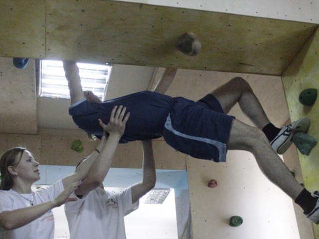 Из интерната для слепых и слабовидящих детей - на скалодром! Девять ребят от десяти до пятнадцати лет привезли в центр военно-патриотического "Взлет".